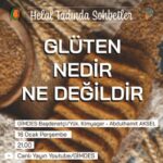Helal tadında sohbetler serimize 2025 yılında da devam ediyoruz . 16 Ocak Perşembe günü saat 21.00’da gerçekleşecek olan Helal Tadında Sohbetler’in bu ay ki konusu “Glüten Nedir? Ne Değildir?” olacak. GİMDES Baç Denetçisi Yüksek Kimyager Abdülhamit Bey’in anlatımı ile gerçekleşecek programda glüten konusuna değineceğiz.