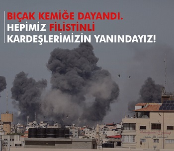Bütün gücümüzle HEPİMİZ FİLİSTİNLİ KARDEŞLERİMİZİN YANINDAYIZ! RABBİMİZ BİRİNCİ KIBLEMİZ OLMASINI MURAT ETTİĞİN KUDÜSÜMÜZÜ BU ZALİMLERİN ELİNDEN KURTARILMASI İÇİN BİZE GÜÇ VER.