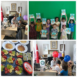 Kitap okumalarımızdan sonra GİMDES helal ve tayyib sertifikalı ürünlerle yapılmış petek hamura, sürülebilir çikolata sürüp çocuklarımıza verdik.