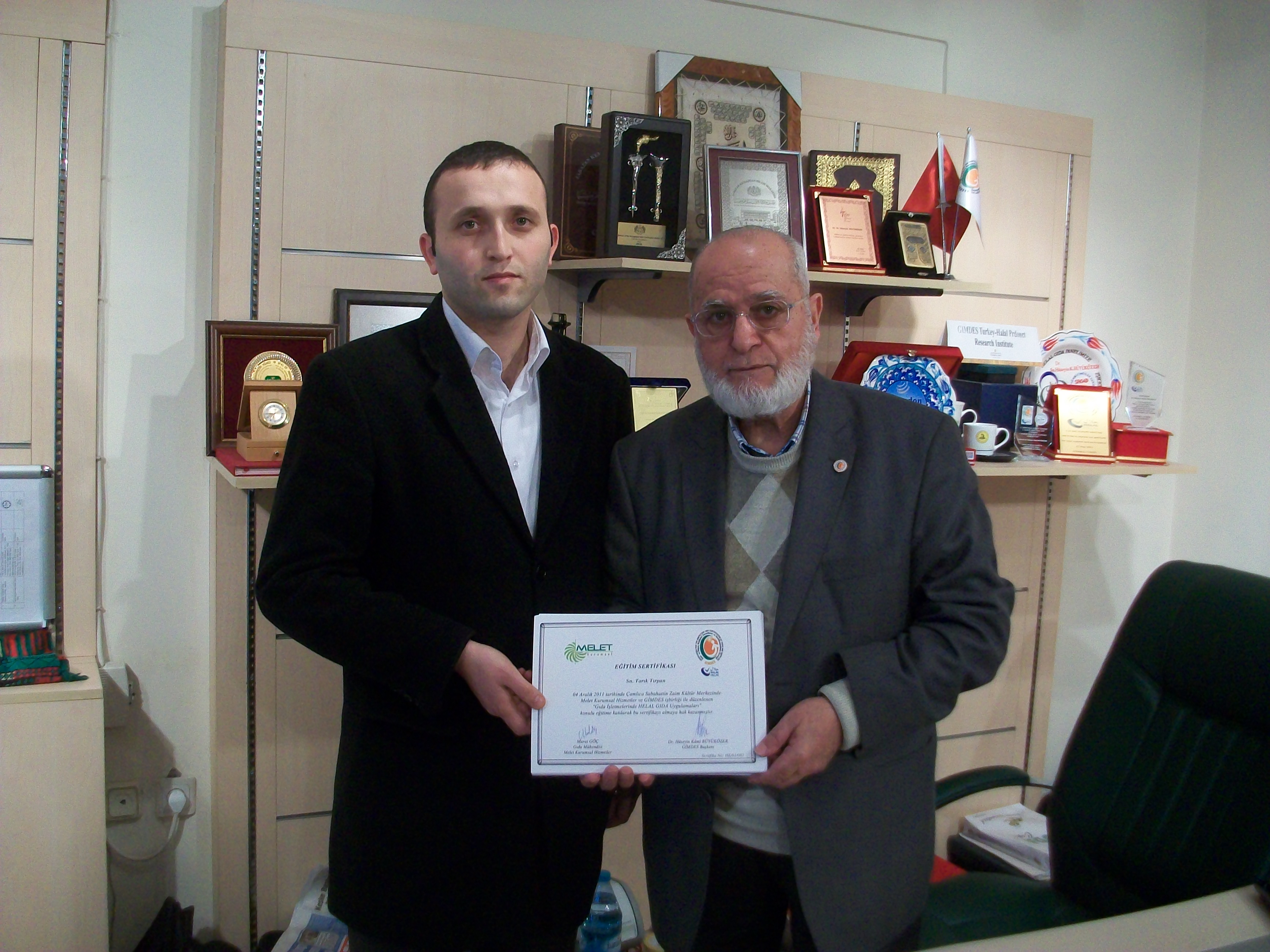 SABAHATTİN ZAİM KÜLTÜR MERKEZİ GIDA KULÜBÜNDE 04 Aralık 2011 tarihinde Dr.H.K.BÜYÜKÖZER, Ahmet Cengiz TUNÇ ve Dr.Bayram YALÇIN’ın eğitim dersleri verdiği ve GİMDES ve MELET KURUMSAL HİZMETLER İŞBİRLİĞİ İLE GERÇEKLEŞTİRİLEN “HELAL GIDA VE HELAL SERTİFİKALAMA EĞİTİM SEMİNERİ”ne KATILAN 88 KATILIMCIYA KATILIM BELGELERİ VERİLDİ