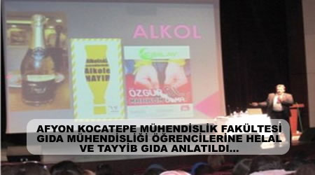 Devamını OkuAFYON KOCATEPE MÜHENDİSLİK FAKÜLTESİ GIDA MÜHENDİSLİĞİ ÖĞRENCİLERİNE HELAL VE TAYYİB GIDA ANLATILDI…