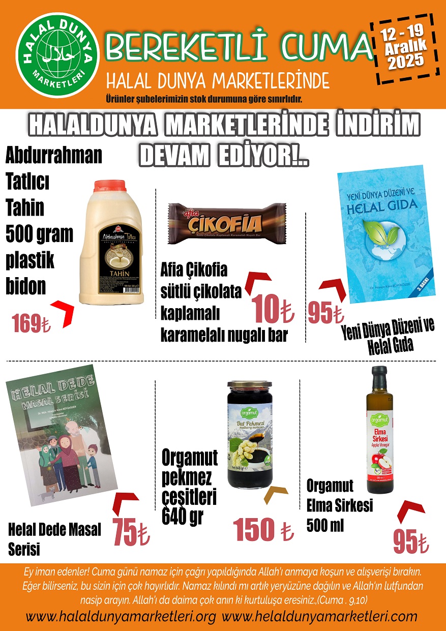 “Bereketli Cuma İndirimi” kampanyamız, bu hafta da kıymetli ürünlerin indirimi ile devam ediyor.