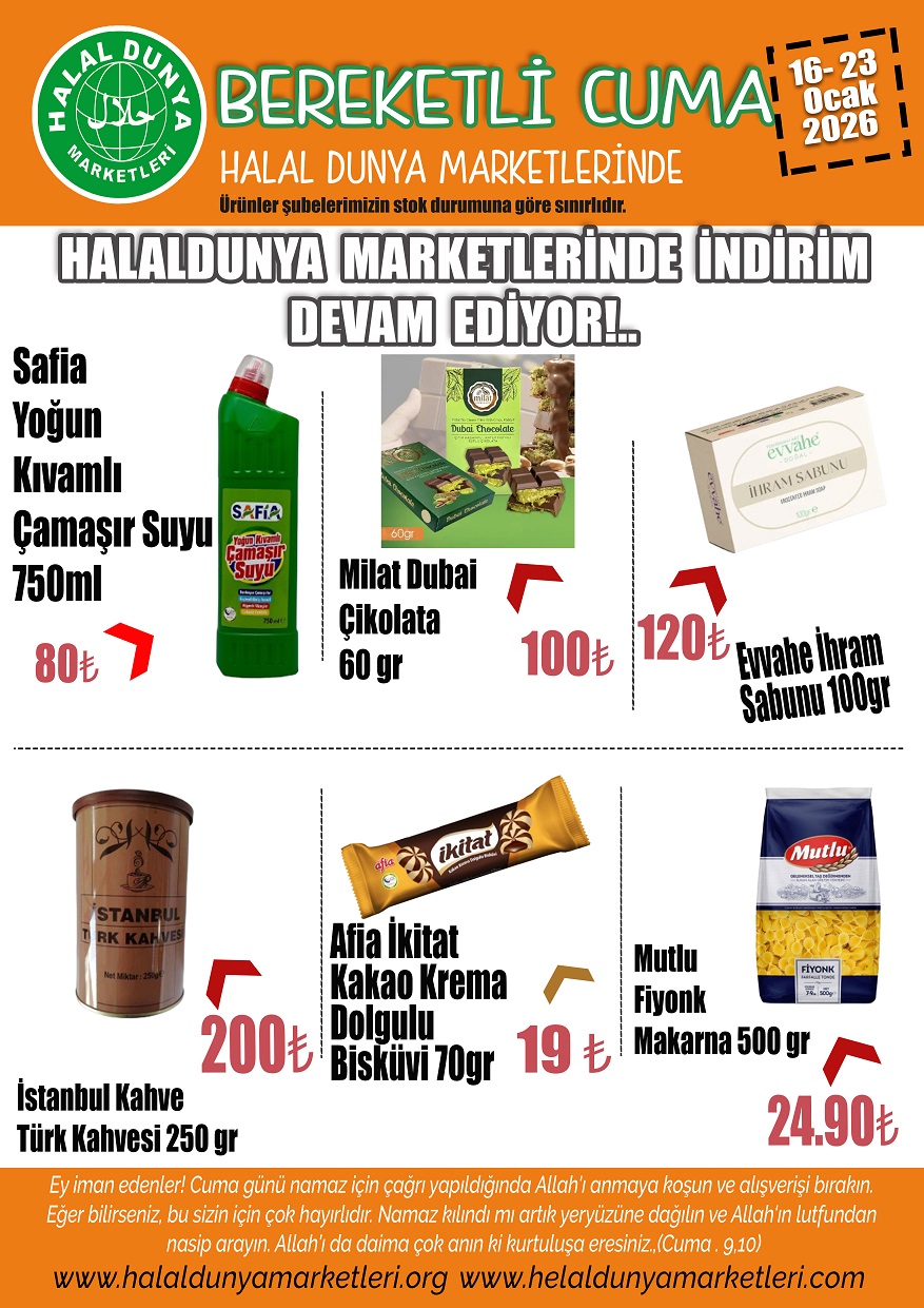 HALAL DÜNYA MARKETLERİNDE: 16 – 23 Ocak 2026 BÜYÜK İNDİRİM GÜNLERİ