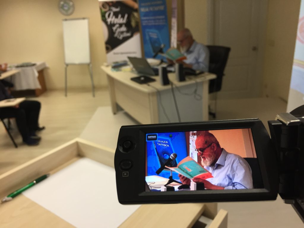 9.30-12.30 arasında GİMDES Başkanı Dr. Hüseyin Kâmi BÜYÜKÖZER: Programın açıklanması, Sınav Sistemi Stajyer Denetçinin açıklanması, Helal ve Tayyib Sertifikalamanın tanımı ve uygulama gerekçesi, Dünya ve Türkiye’deki uygulamaları, GİMDES’in kuruluşu, tanıtımı, günümüze gelinceye kadar geçirdiği süreçler, Helal Sertifikalı bir denetçide olması gerekli özellikler, Kefalet kurumunun önemi, Denetçiliğin önemi, Dünya Helal Vakfı ve Halal Dunya Marketleri Projelerinin tanımı, önemi ve gelişimi konulu dersini Verdi.