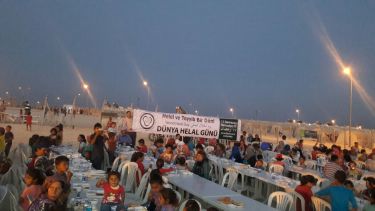 kardeşlerimize iftar hizmeti ni yüklenen Hayrat Vakfı ile anlaşarak, 17 Ramazan Dünya Helal Gününü kutlama programı çerçevesinde GİMDES’in yükümlülüğünde 1000 kişilik iftar yemeği gerçekleştirilmiştir. Proramda GİMDES Başdenetçilerimizden Ahmet Tunç CENGİZ, İbrahim YÜZGÜLÜ ve Halim GİRGİN hazır bulundular . Proram boyunca kardeşlerimizle ve bilhassa yetim çoculklarımızla yakından ilgilendiler, GİMDES,Helal Sertifikalama,Halal Dunya Marketleri, Helal Dünya GÜNÜ ve Darul Helal Medrese projemiz üzerinde bilgilendiren konuşmalar yaptılar.